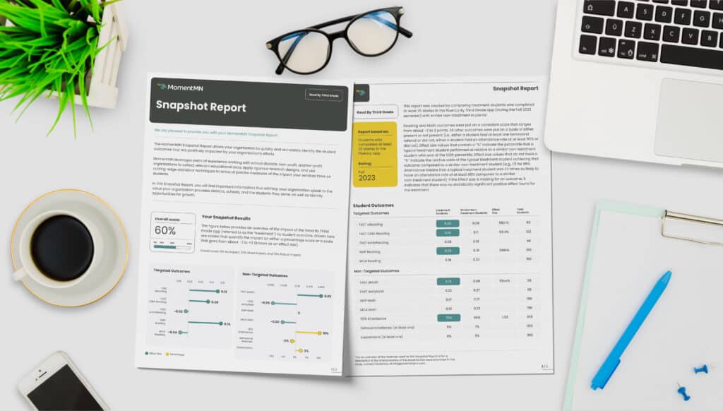 If you need more than a number and want decision-ready insight into whether a program is truly improving outcomes for students, MomentMN Snapshot Reports offer a practical path forward. They help organizations move beyond guesswork toward evidence-based decisions grounded in clarity, rigor, and relevance.