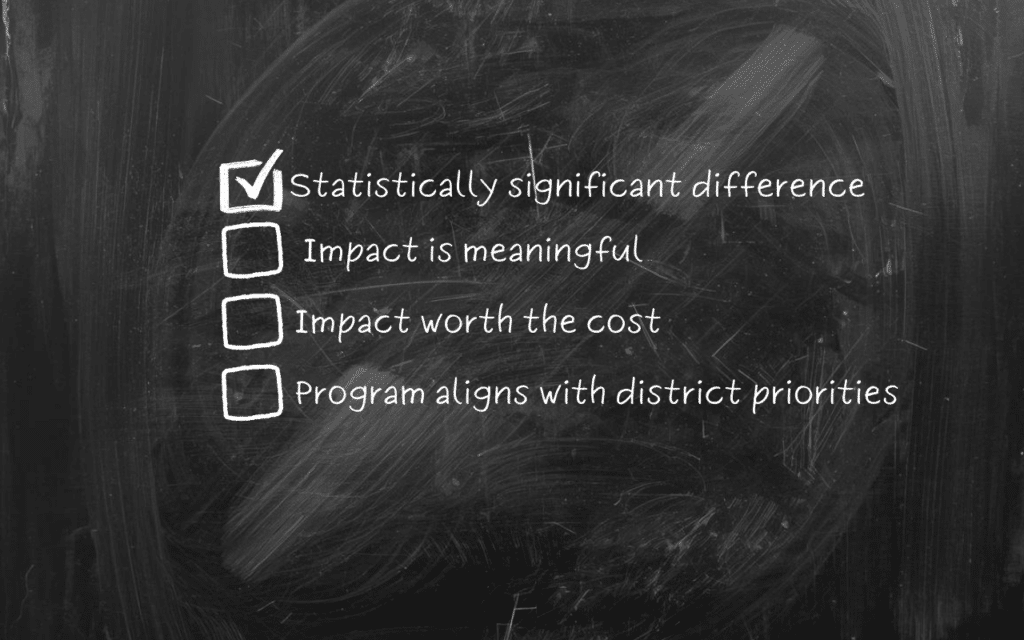 When thinking about the ROI of a particular product or program, leaders need more than proof that a difference exists. They need to know whether the magnitude of that difference is large enough to justify continued investment. They need to weigh impact against staffing demands, implementation complexity, scalability, and budget pressure.